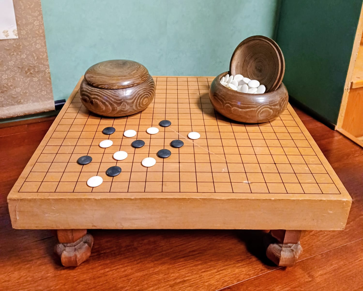 scacchiera per il gioco del GO – cm 45,5 x 42,2 altezza cm 17 completa di box per pedine bianche e nere – prodotto vintage in legno di Buna