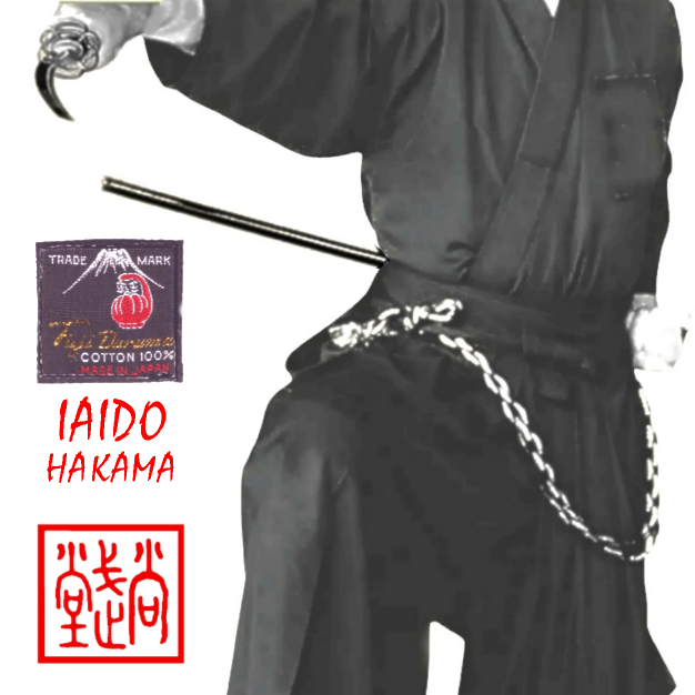 Hakama nera per Iaido, made in Japan ” FUJI DARUMA” , koshi rigido