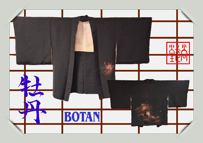 Haori vintage in seta. Fantasia ‘ fiori di peonia, Botan’.