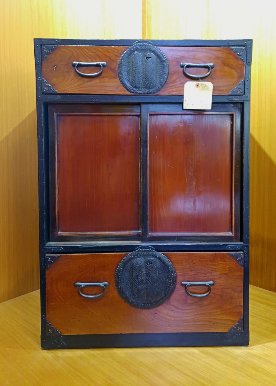 Mobile con ante scorrevoli: in legno di Hinoki e interni in legno di Pawlonia.