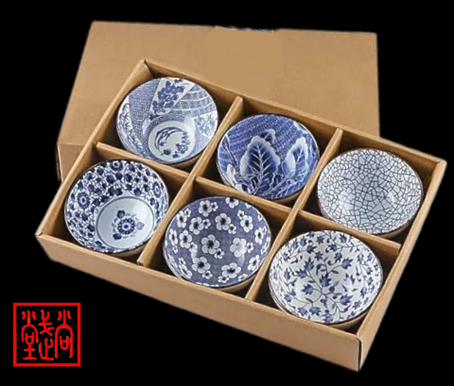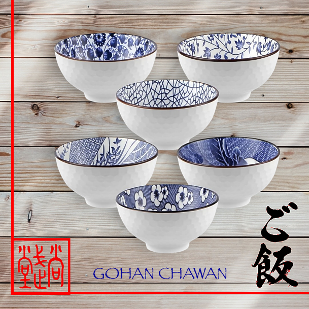 Set composto da 6 ciotole in ceramica CHAWAN con motivi classici della tradizione giapponese.