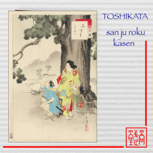 Stampa della serie le 36 bellezze (sanju rokka sen) di Toshikata Mizuno (1866-1908) datata 1894 , 27° anno era meiji Titolo “mushi no oto ” ascoltando il suono degli insetti.