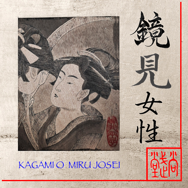 Tavoletta in multistrato du OKUME: Kakami o miru josei, donna che si specchia.